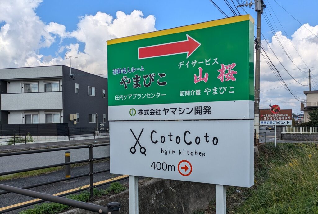 下車後デイリーヤマザキの方へ歩くと下記看板がございますので、道沿いにお進みください。